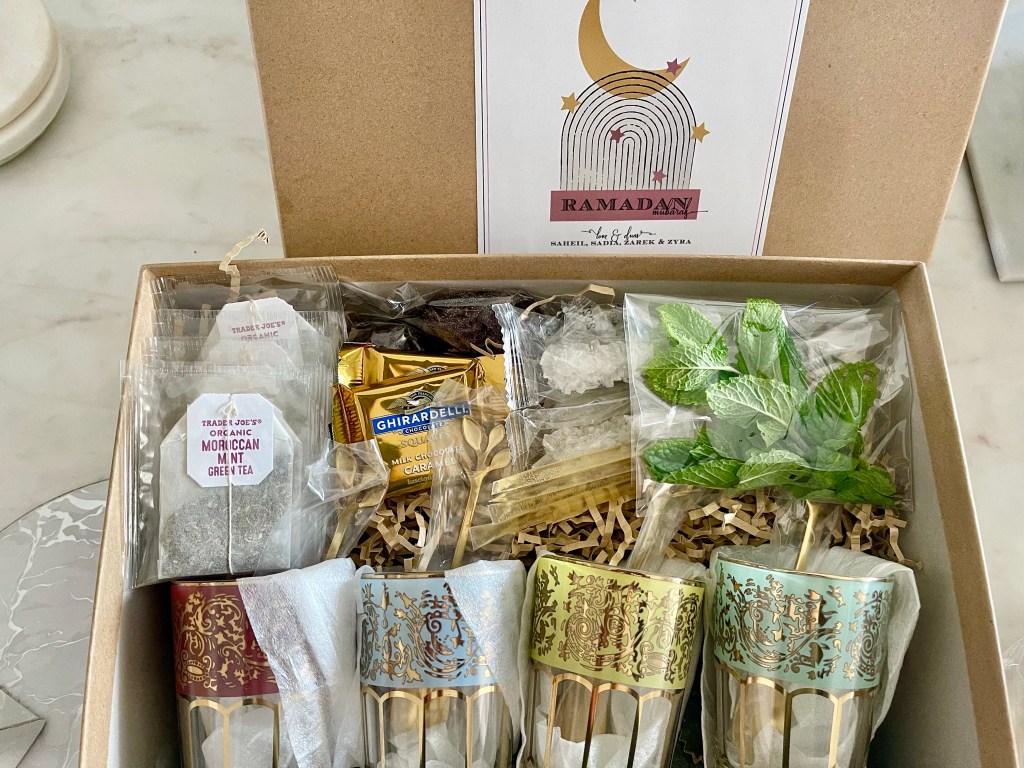 Few things warm the soul and body like tea. Sadia Khawaja Aboutalib, friend and career creative, curated and gifted these gorgeous tea-time boxes with custom art during Ramadan. She shared the list of items she curated, and they are all fabulous finds: