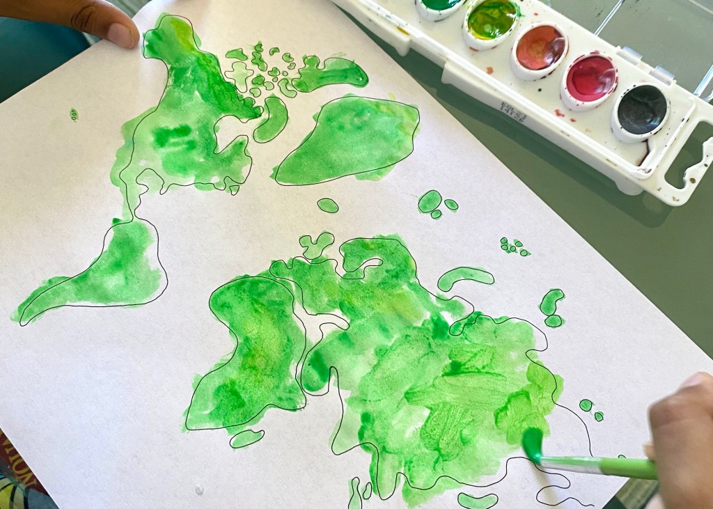 - Print out my free 8.5×11 World Map Download to paint! I’ve created a detailed version and a simple version (for younger painters).