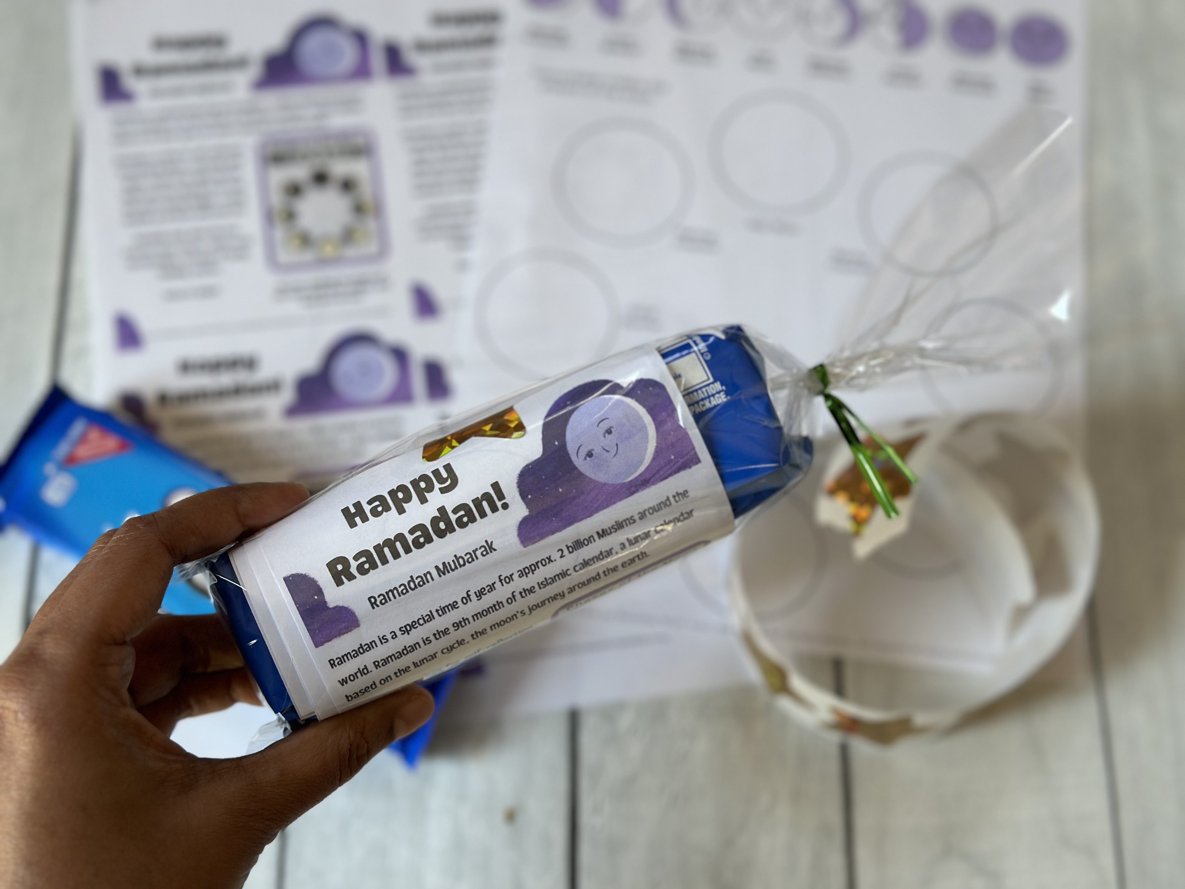 I love this EASY Ramadan favor, and so do my public school teachers. It incorporates STEM, is dairy-free/nut-free, and also creates minimal waste. Gluten-free chocolate cookies with creme can be purchased from some brands.